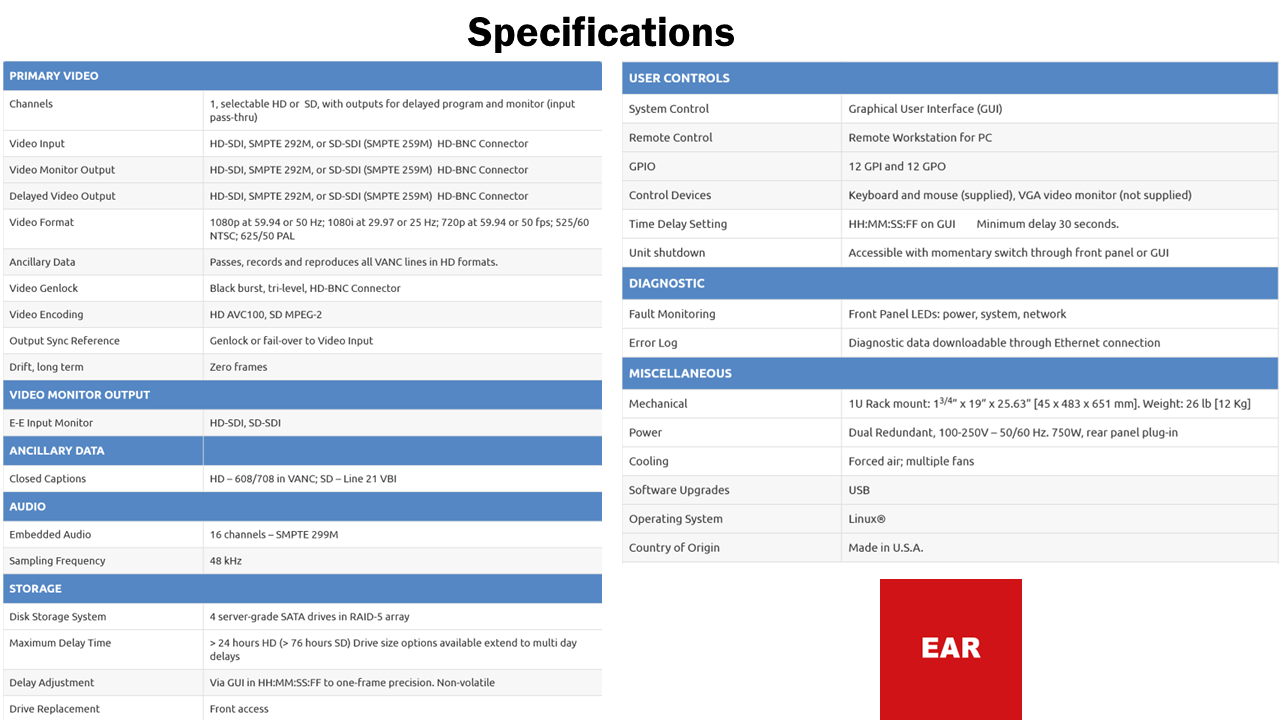 The TSS-1080p Variable Time Delay system sets new standards in broadcast precision and reliability. Whether you're in the fast-paced world of competitive gaming or the world of theatrical production, EAR's TSS-1080p is your trusted partner for achieving excellence in video management. Elevate your broadcast experience with the TSS-1080p—where control meets quality.