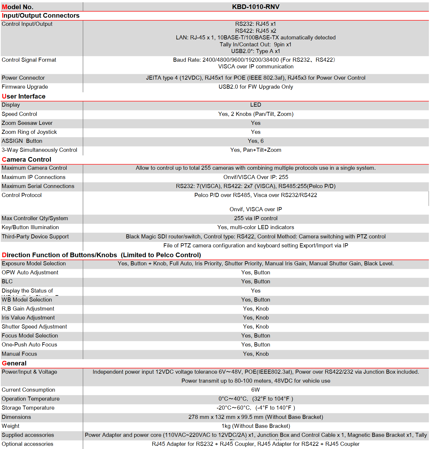 - Cross Protocol Mix-control, Visca, Visca-Over-IP, Pelco P/D, Onvif IP.
