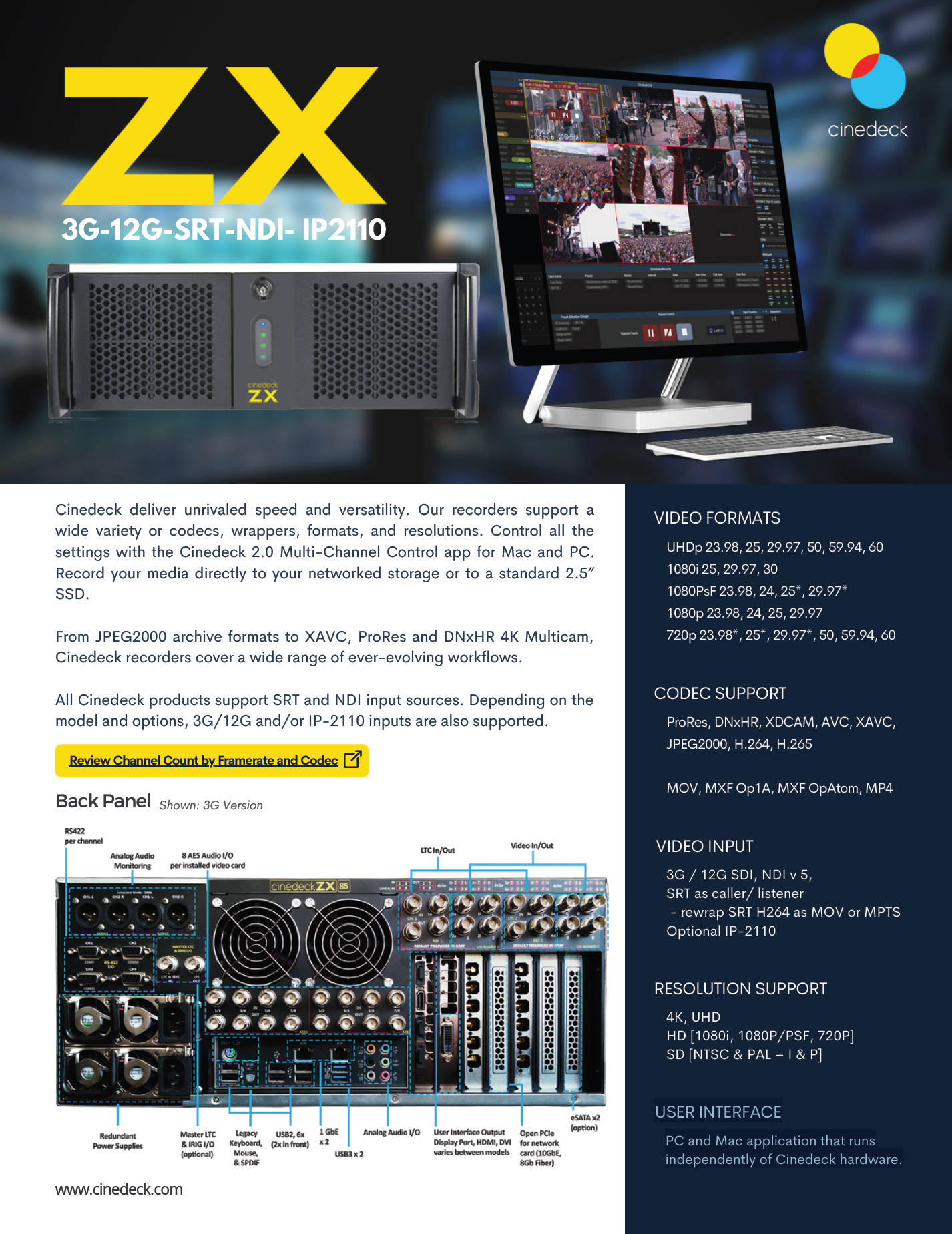 Cinedeck ZX85 4U - 12G-SDI, 8-input up to 30p, NDI and SRT Multi-Channel Video Recorder Server