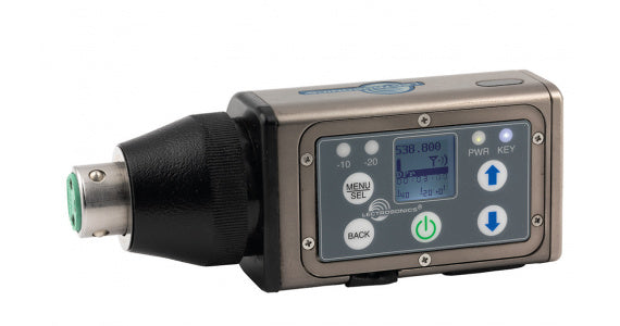 Wideband UHF tuning range – 470-608 MHz (470-614 MHz for E01 version) Accepts microphone or line level signals Selectable 5, 15, 48 volt phantom power Selectable 25/50 mW RF output power Adjustable low frequency roll-off Powered by two AA batteries IR (infrared) port for fast setup Remote controlled “dweedle” tones (audio tone set-up control) Time code jam sync with Solid machined aluminum housing On board recording Encryption 256 Bit AES, CTR Mode