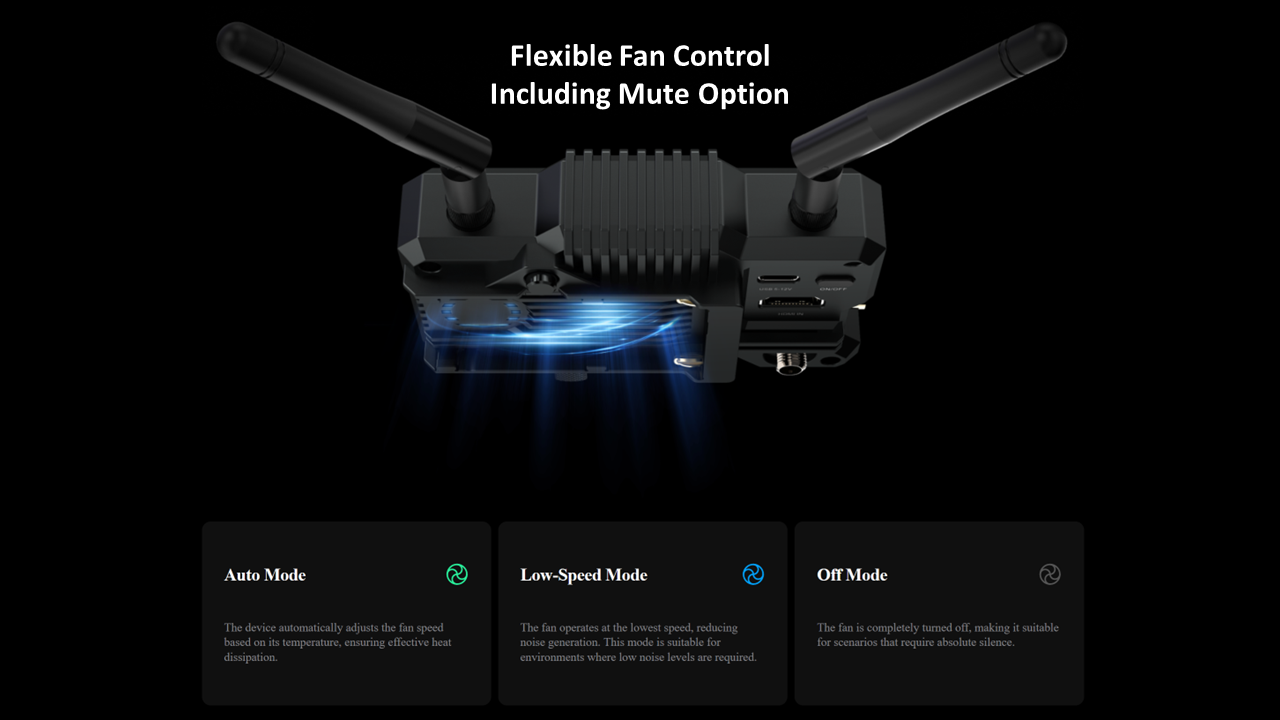 Flexible Fan Control Including Mute Option: The Mars 400S Pro II comes with a three-speed fan adjustment function (Auto, Low Speed, Off). With its intelligent cooling system, it is able to operate efficiently in different situations by lowering the device temperature and maintaining a steady signal transmission.