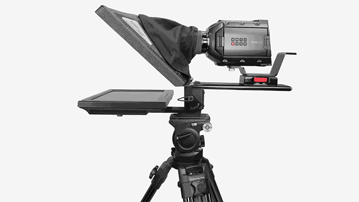 FLEX PLUS teleprompters have a fold down beamsplitter hood and glass and a removable camera mount extrusion rail. This makes the FLEX PLUS easy to pack and transport and allows the FLEX PLUS models to be used as either tripod mounted or Freestanding. Ultra adjustable with easy, tool-less control of camera and monitor position. The monitors are *(1) self-reversing and can display prompting with either the included PC and Mac software or with any presentation software such as PowerPoint or Keynote. flexplus-gif-grey-bg.gif *(1) The text reflection in glass reads backwards. Our monitor reverses the text so it is readable.