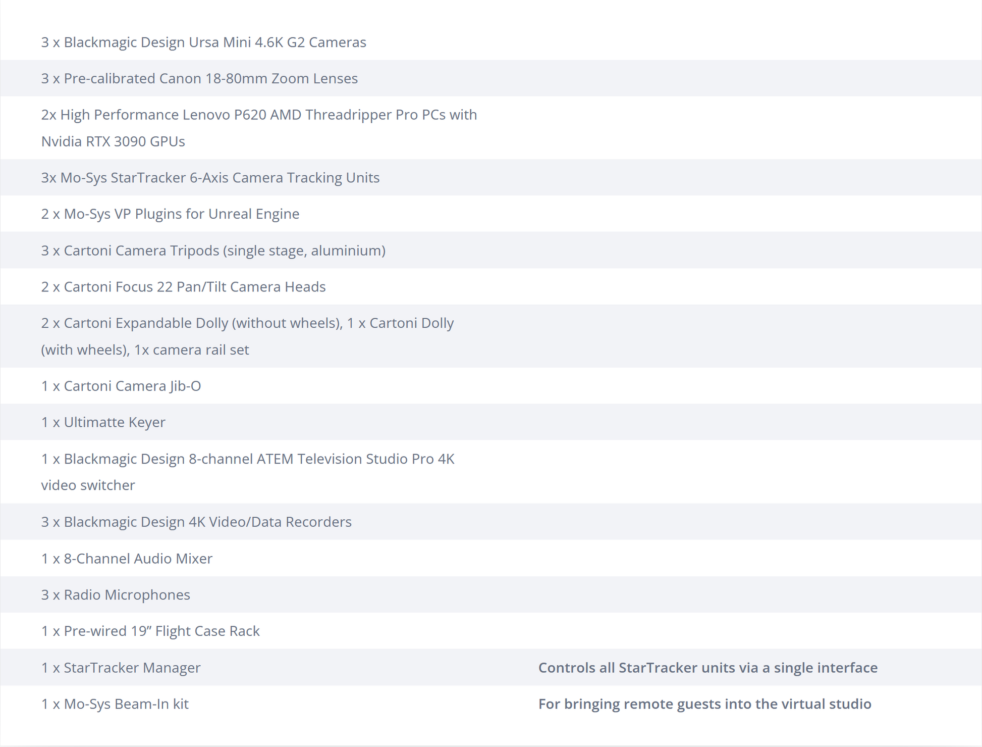 • Includes Mo-Sys Beam In technology – include remote guests in a virtual studio.