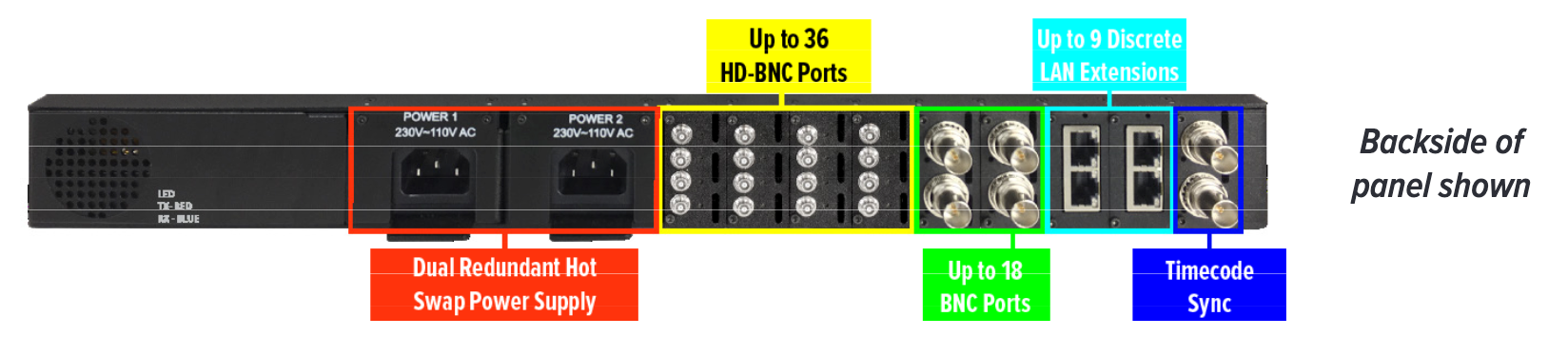 • High Density: Supports up to 9 1GbE RJ-45, 18 BNCs, or up to 36 HD-BNCs.