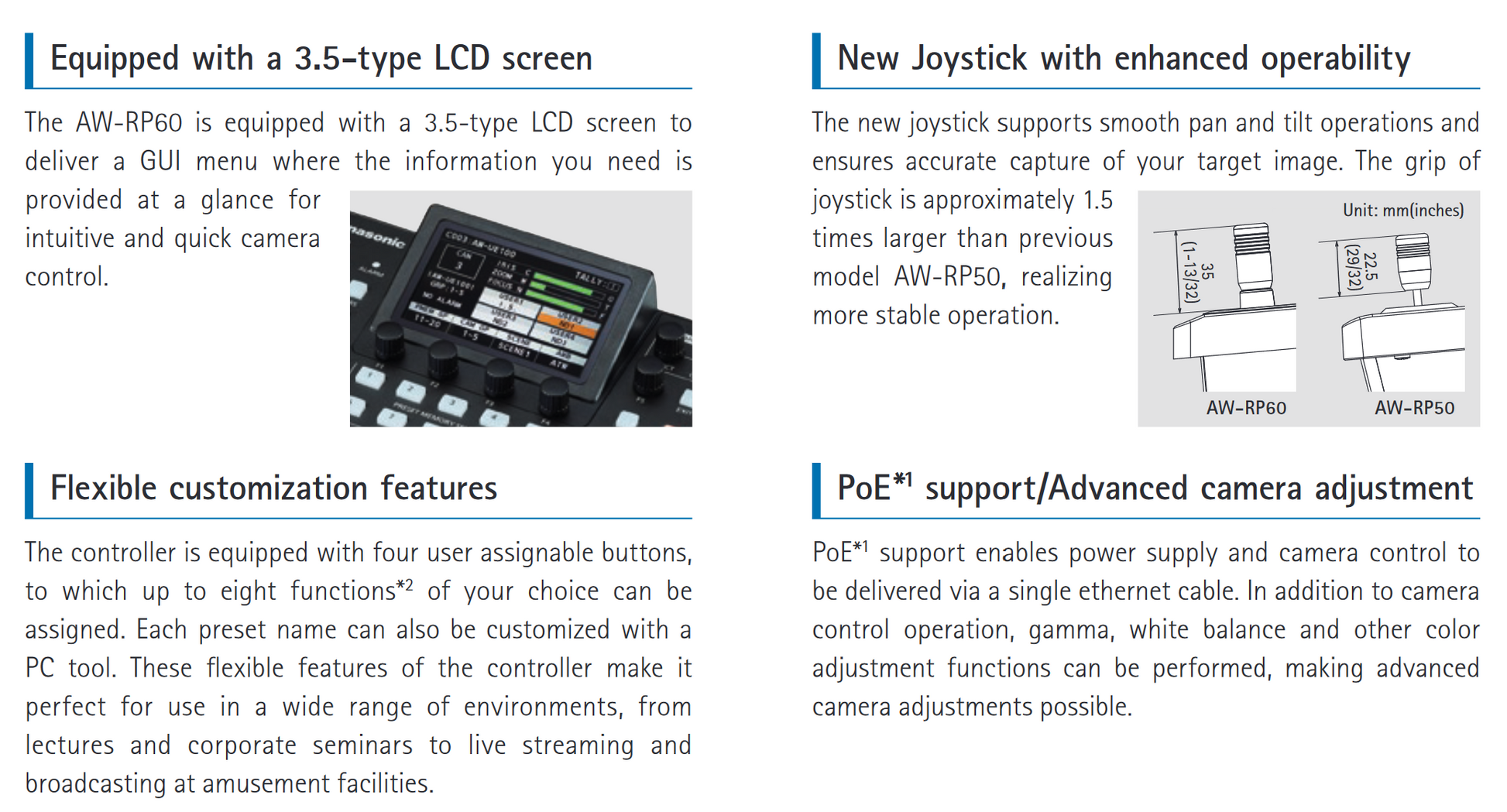 Panasonic AW-RP60GJ Compact Remote PTZ Camera Controller