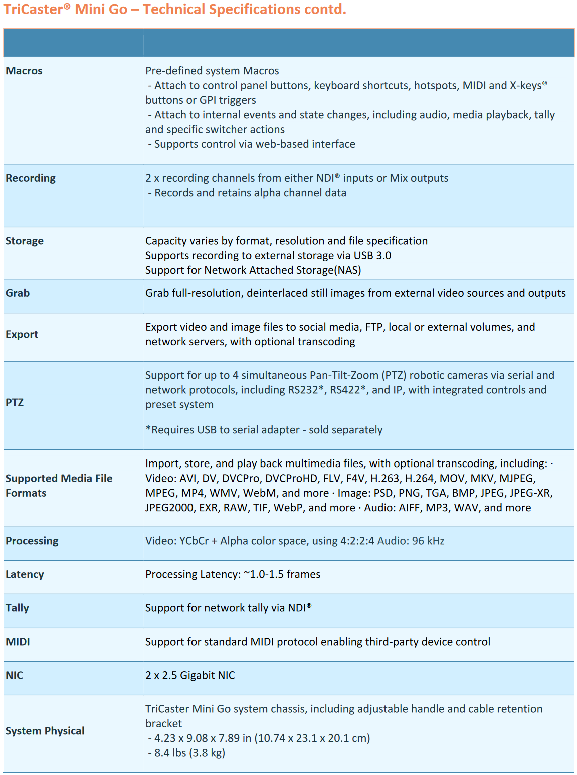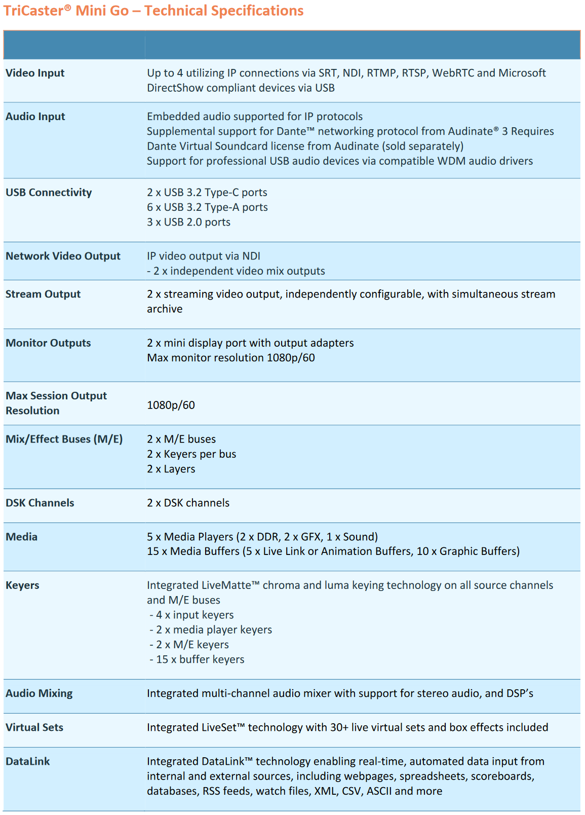 Vizrt (Newtek) TCMG Tricaster Mini Go