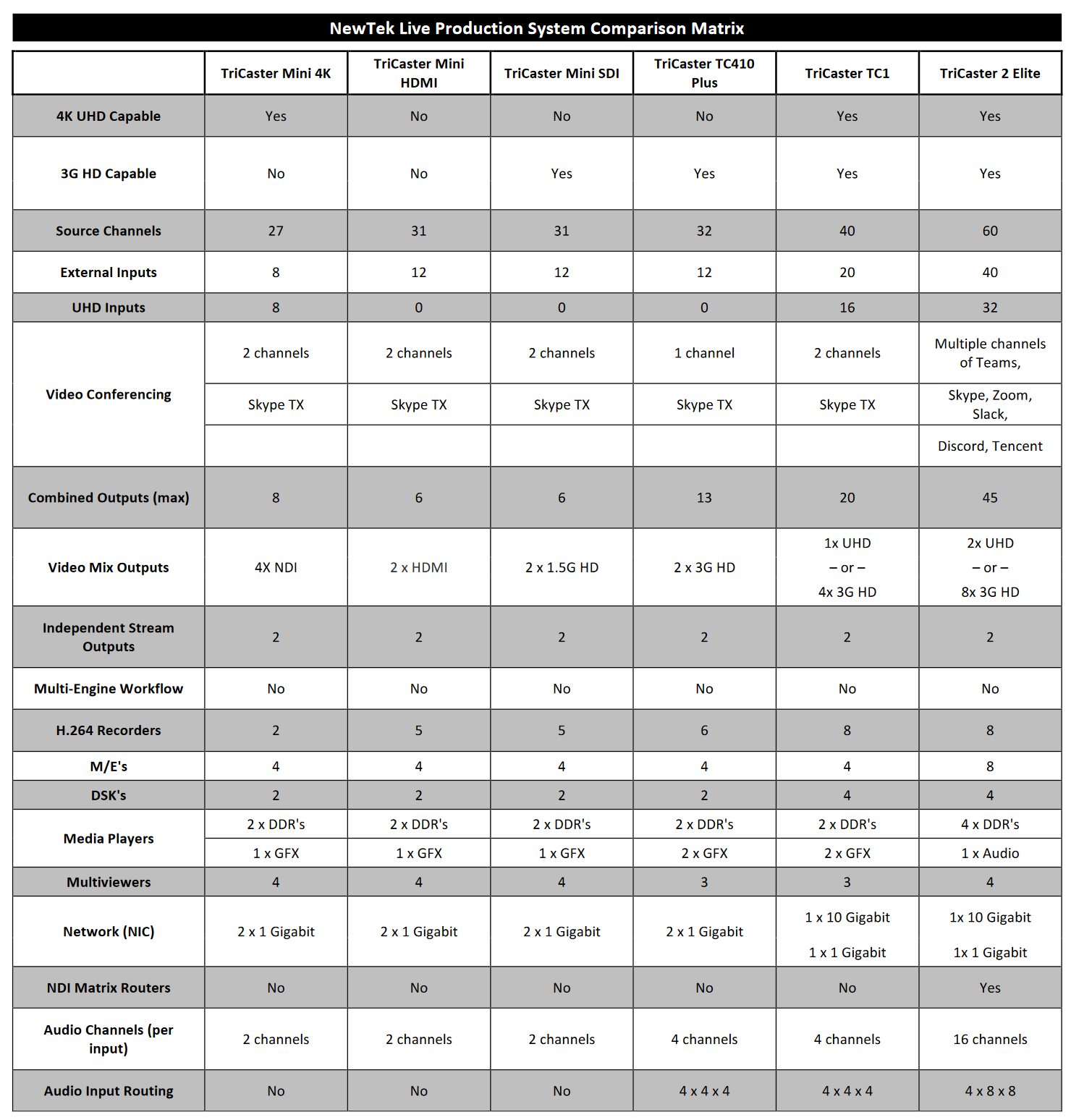 The Vizrt TriCaster® TC1 offers a complete 4K UHD digital media production solution. It stands out as the most advanced software-driven live production system currently on the market. With its cutting-edge production features and IP workflows, TC1 is designed to leverage modern networking and computing technologies, as well as a wide range of future-ready capabilities. This solution is unmatched in its ability to efficiently produce and deliver content that caters to the evolving viewing preferences of audiences. The agile software-driven IP native technology and functionality of TriCaster® TC1 equips users with the necessary capability, connectivity, and control to tackle any production task. Click here to access Vizrt Tricaster TC1 Details